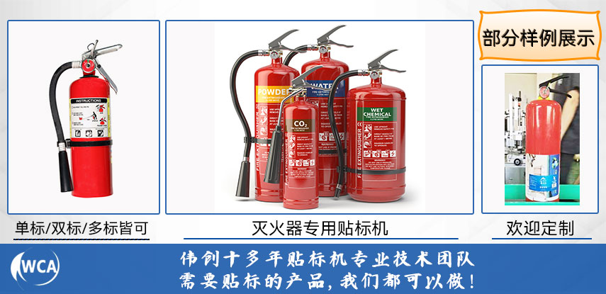 - 适用于灭火器罐圆周贴一张或多张标签、能够以气压表作为定位点,指定位置进行贴标;替代人工、提高产能,避免人工贴标出现大面积贴歪、褶皱等现象,提高产品品质。 ( 可以定做超大版灭火器罐贴标机 )